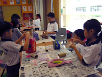 This week, 1F pupils had to create their favourite 'buildings'. After a few minutes of brainstorming for ideas with their group members, the children started constructing the 'buildings' using recycled materials. I enjoyed observing the process as they helped one another to secure the parts together and discussed which part worked best with other parts.